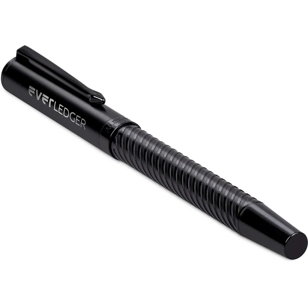 The Alex Varga collection features writing instruments with distinctive yet tasteful designs, and high quality refills and mechanisms. Each piece or set is presented in elegant packaging, making them gifts which are given with pride and confidence. This rollerball pen combines an embossed patterned lower barrel with a smooth, matte black upper barrel. It’s fitted with a free-flowing rollerball refill which has a minimum writing distance of 600 Metres. A spare refill is provided with this pen.