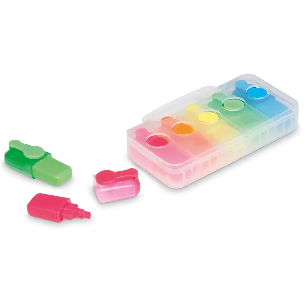 A set of 5 mini highlighters in different colours, with branding available on the case.