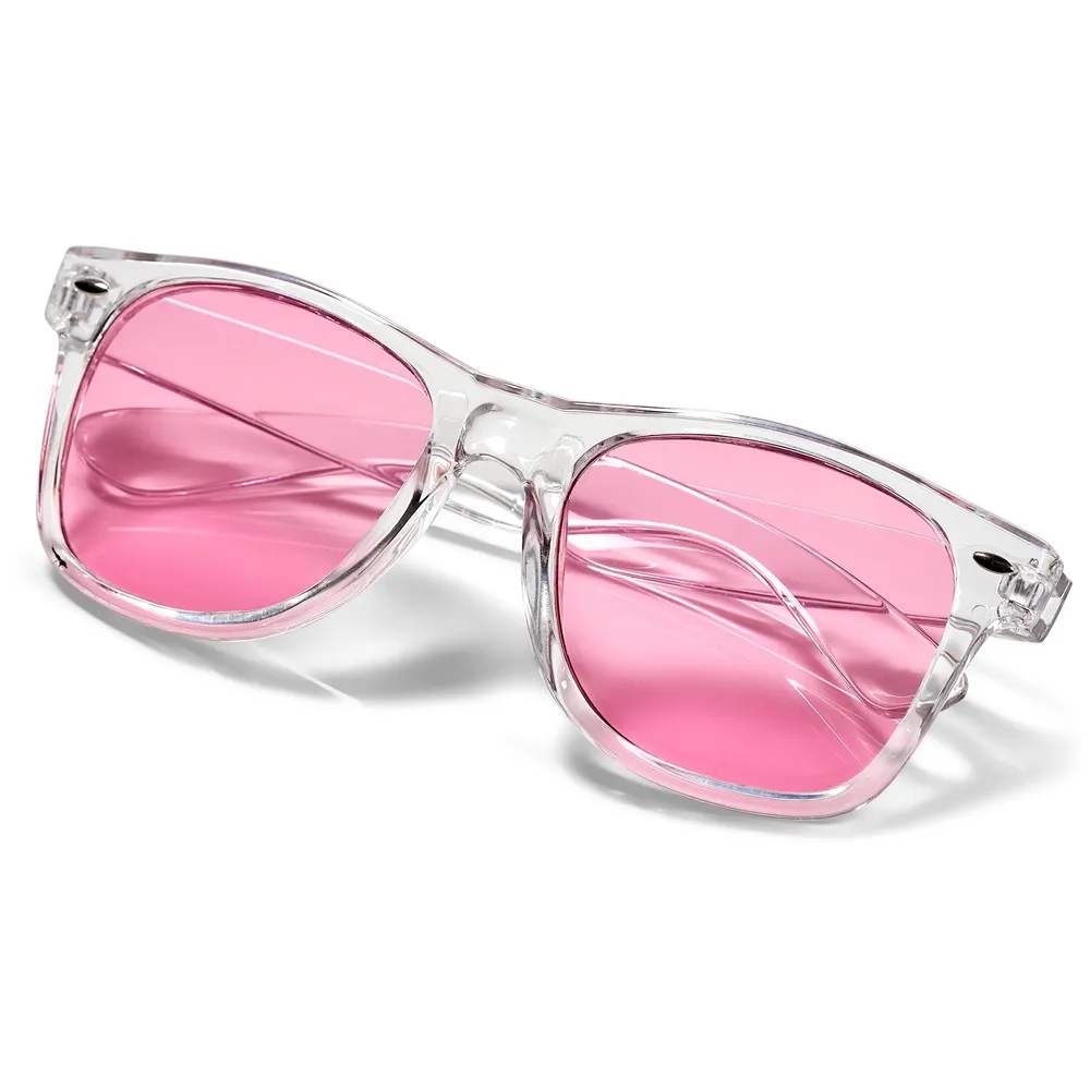 The transparent, clear frames and lightly tinted lenses give a clean and fresh look to these sunglasses, which will have you thinking of crystal clear ocean waters and cool Summer breezes. The UV400 protection is indicated on an easily removable sticker on the glasses. Branding is offered on the transparent temples, making these sunglasses a super Summer promotional item.